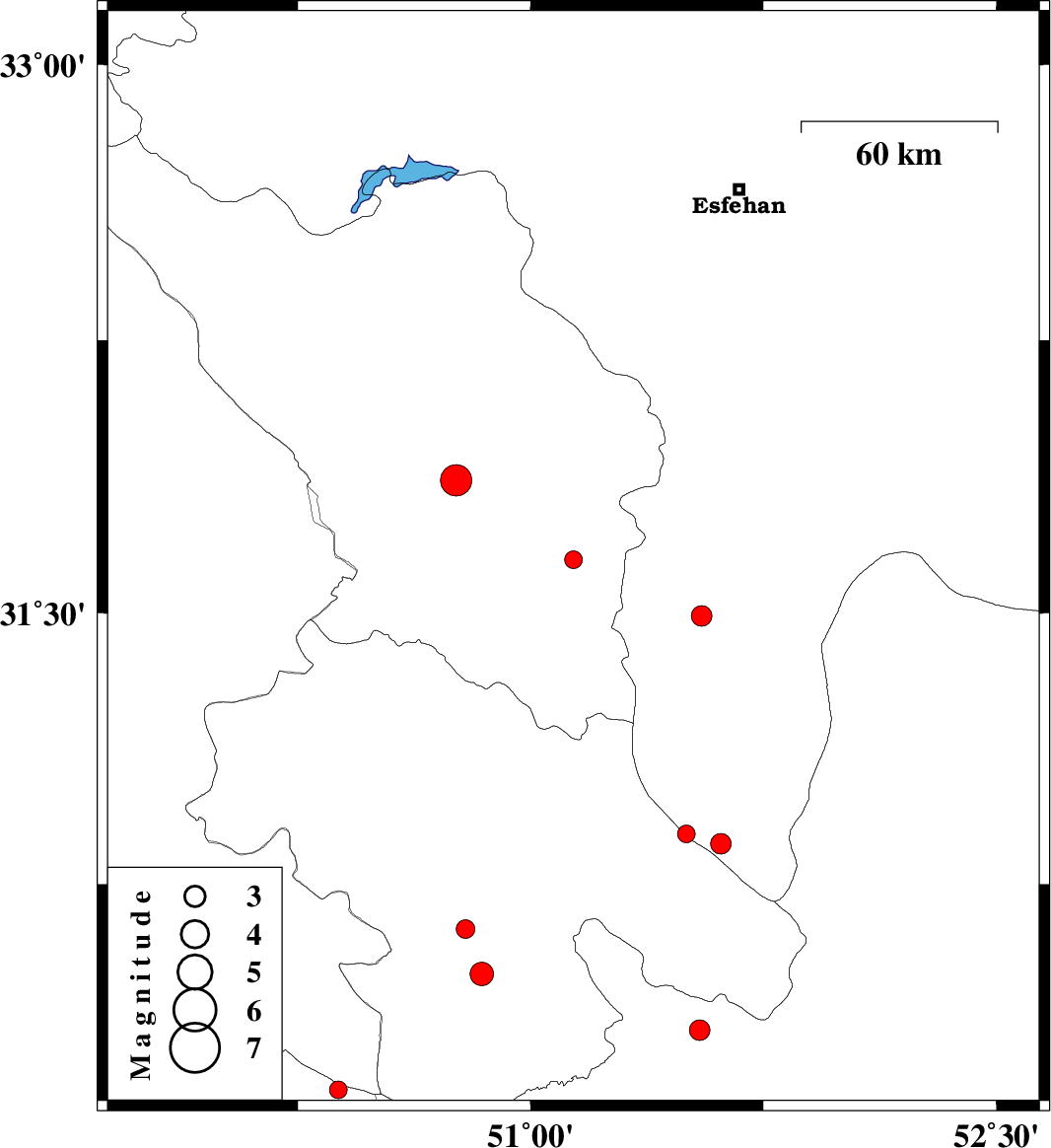 | 2016/04/09 | 08:13:09.5 | 12:43:09.5 | 30.862 | 51.613 | 14 | ML:2.9 | Esfahan Province, 15 km -East of Sisakht | ||