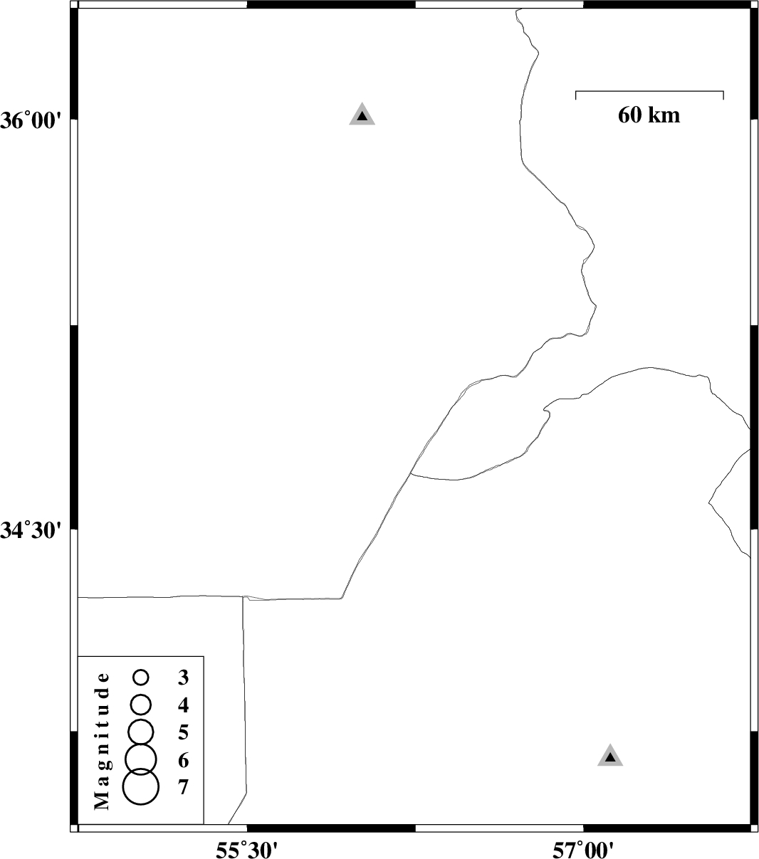 2016/04/23 | 04:01:12.0 | 08:31:12.0 | 34.902 | 56.244 | 14 | ML:2.8 | Semnan Province, 158 km North-West of Tabas |