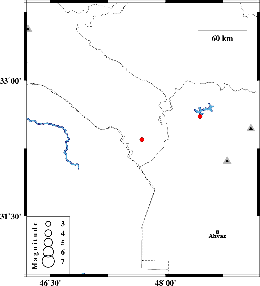 | 2016/04/21 | 04:20:48.6 | 08:50:48.6 | 32.604 | 48.45 | 14 | ML:2.6 | Khoozestan Province, 18 km North of Andimeshk |