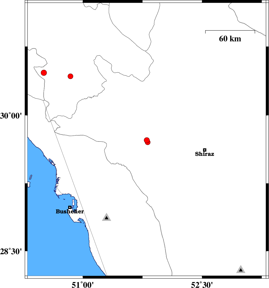 | 2016/05/01 | 23:48:01.6 | 04:18:01.6 | 29.703 | 51.815 | 12 | ML:3 | Fars Province, 18 km -East of Kazerun | ||