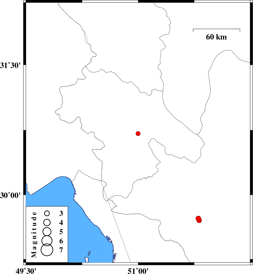 | 2016/05/01 | 23:48:01.6 | 04:18:01.6 | 29.703 | 51.815 | 12 | ML:3 | Fars Province, 18 km -East of Kazerun |
