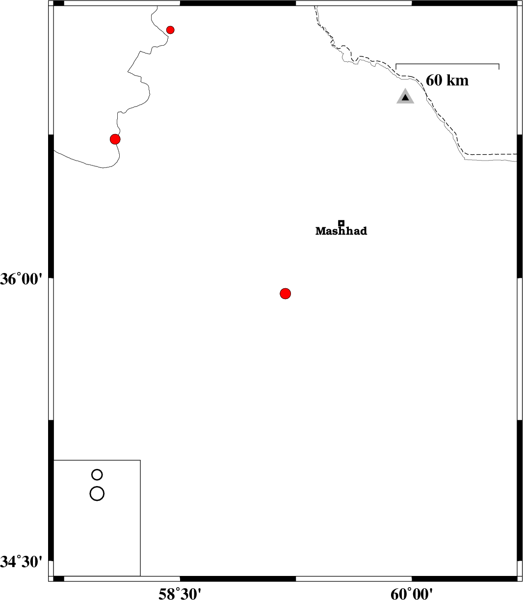 2016/05/11 | 12:38:33.1 | 17:08:33.1 | 37.292 | 58.436 | 14 | ML:2.2 | Khorasan(center) Province, 21 km North of Quchan | ||