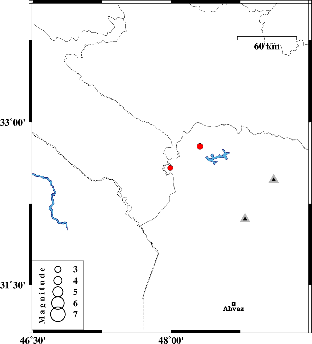 | 2016/05/23 | 18:50:50.4 | 23:20:50.4 | 32.58 | 47.99 | 15 | ML:2.5 | Khoozestan Province, 36 km North-West of Andimeshk | ||