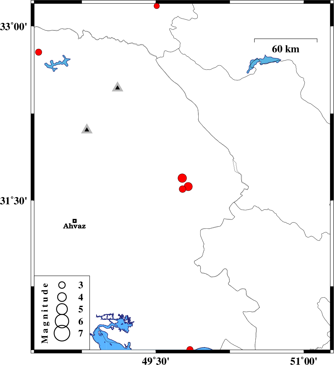 | 2016/05/25 | 05:53:54.2 | 10:23:54.2 | 31.693 | 49.768 | 15 | ML:3.9 | Khoozestan Province, 19 km South-West of Izeh | ||