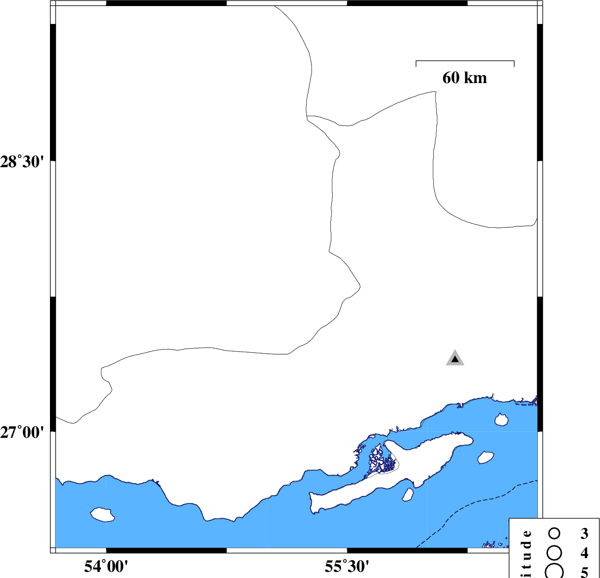 | 2016/05/29 | 17:18:29.3 | 21:48:29.3 | 27.85 | 55.184 | 15 | ML:4 | Fars Province, 85 km North-East of Lar |