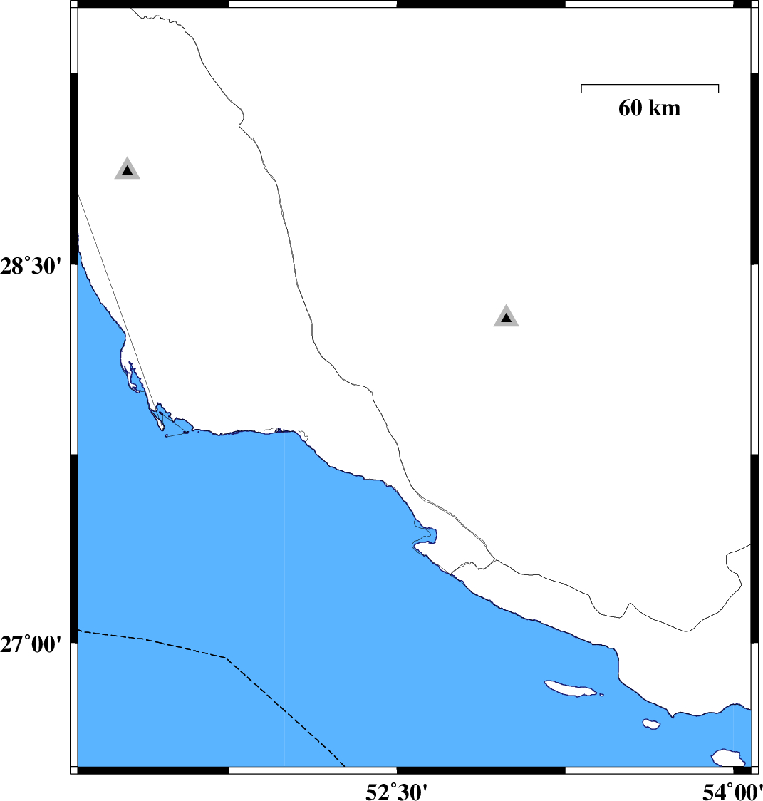 | 2016/06/07 | 08:35:49.6 | 13:05:49.6 | 28.006 | 52.577 | 14 | ML:2.8 | Fars Province, 32 km North-East of Jam |