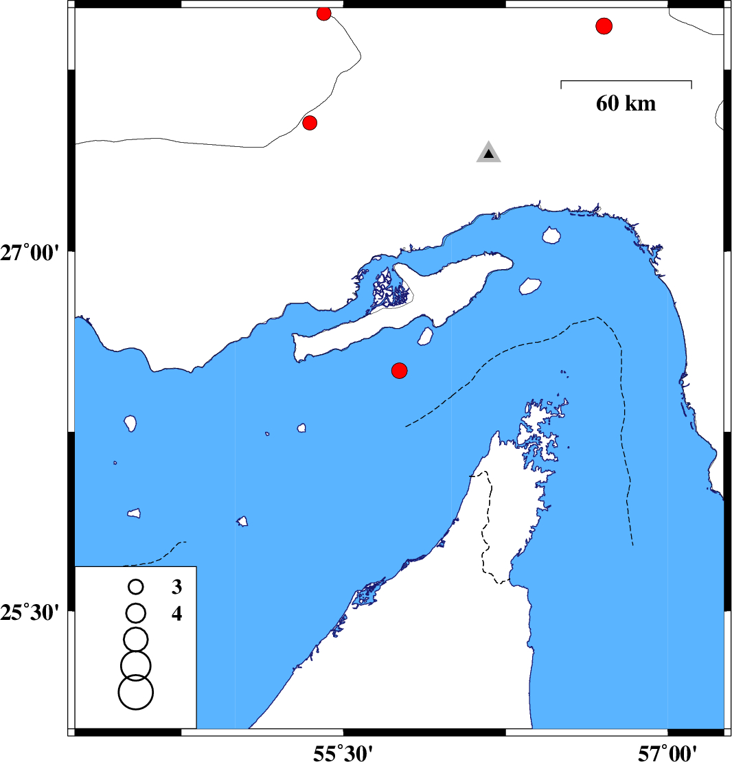 | 2016/06/07 | 15:25:33.9 | 19:55:33.9 | 27.531 | 55.344 | 15 | ML:2.9 | Hormozgan Province, 100 km South-East of Lar |