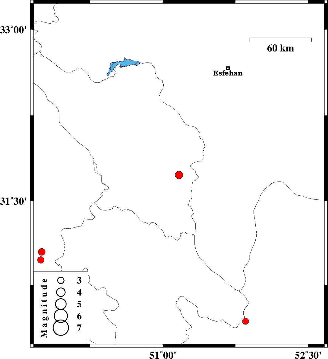 | 2016/06/28 | 15:07:49.3 | 19:37:49.3 | 31.726 | 51.167 | 15 | ML:3.5 | Chaharmahal Bakhtiari Province, 29 km South-West of Borujen | ||