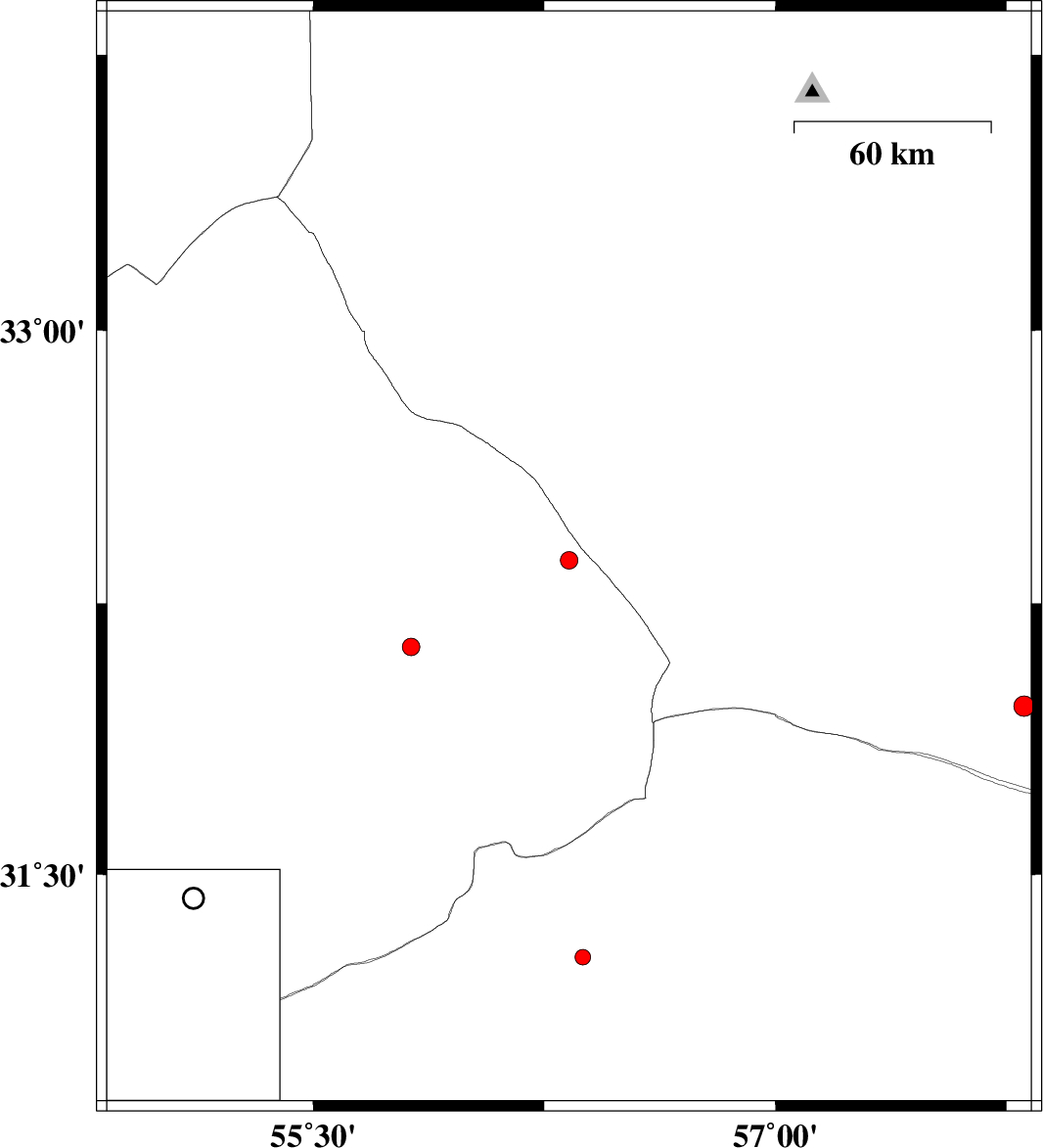 | 2016/07/11 | 10:44:44.1 | 15:14:44.1 | 31.269 | 56.375 | 14 | ML:2.2 | Kerman Province, 42 km -West of Ravar |