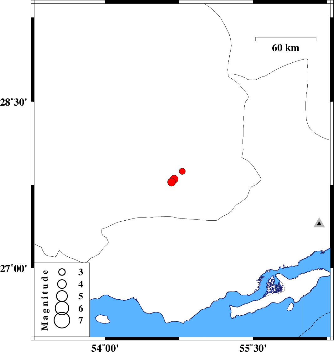 | 2016/07/26 | 10:10:41.4 | 14:40:41.4 | 27.803 | 54.701 | 15 | ML:3.7 | Fars Province, 38 km North-East of Lar |