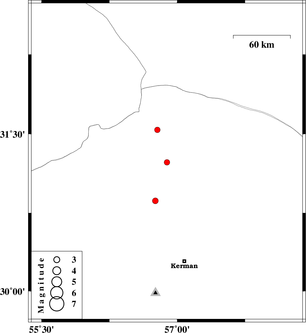 | 2016/08/06 | 04:12:01.5 | 08:42:01.5 | 30.865 | 56.758 | 14 | ML:3 | Kerman Province, 19 km -East of Zarand | ||