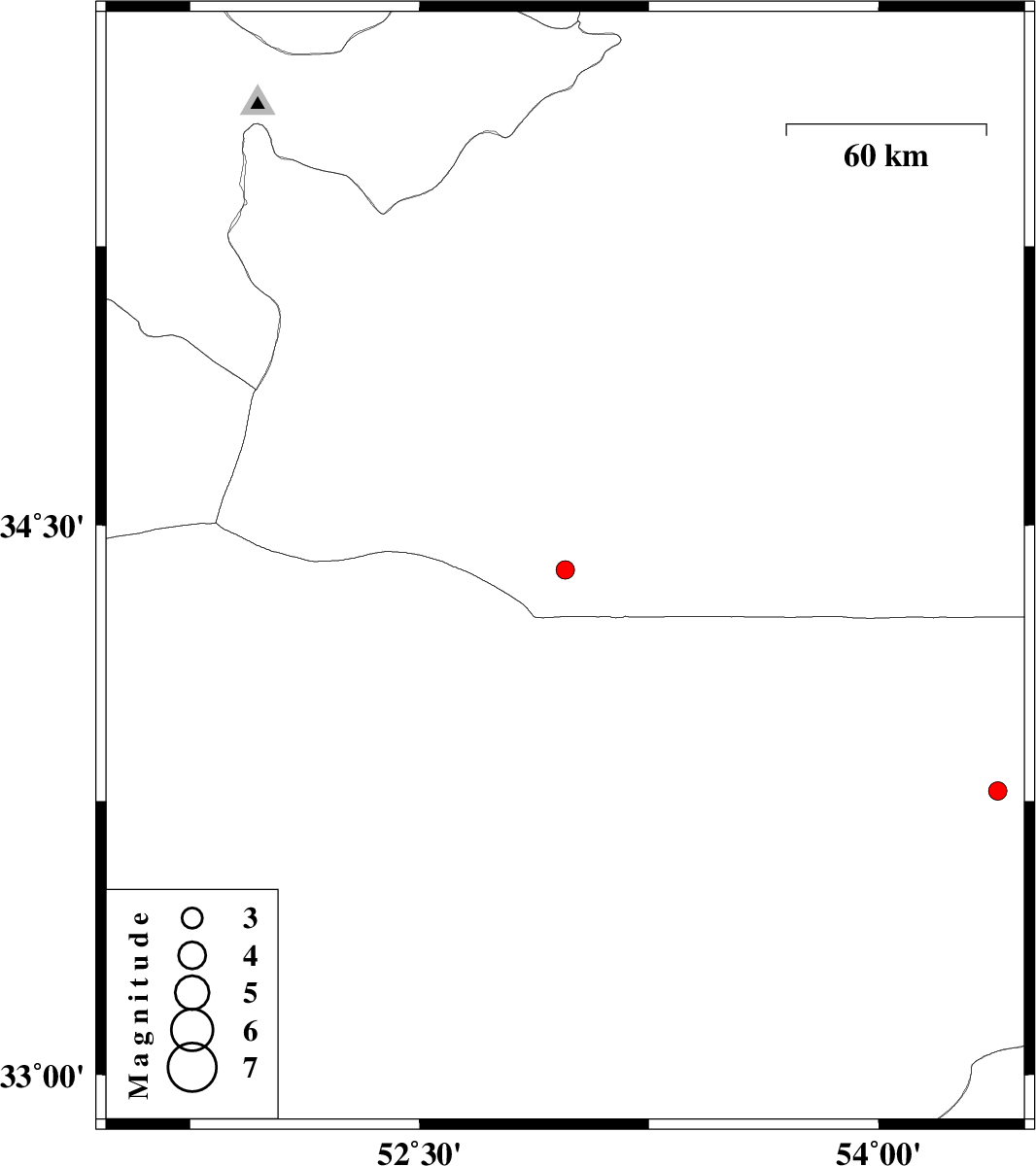 | 2016/08/24 | 01:11:07.3 | 05:41:07.3 | 34.378 | 52.976 | 15 | ML:2.7 | Semnan Province, 110 km South-East of Garmsar |
