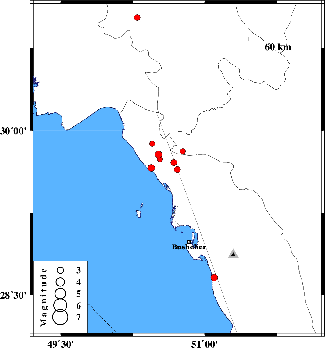 | 2016/08/27 | 04:14:06.6 | 08:44:06.6 | 29.811 | 50.773 | 15 | ML:2.5 | Fars Province, 36 km North-East of Bandar-e genaveh | ||