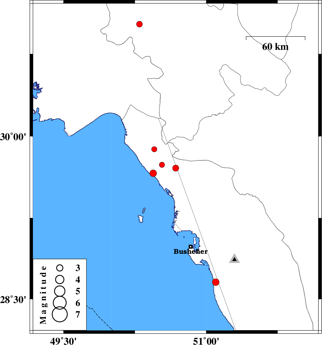 | 2016/08/26 | 17:47:16.0 | 22:17:16.0 | 29.709 | 50.679 | 14 | ML:3 | Bushehr Province, 22 km North-East of Bandar-e genaveh | ||