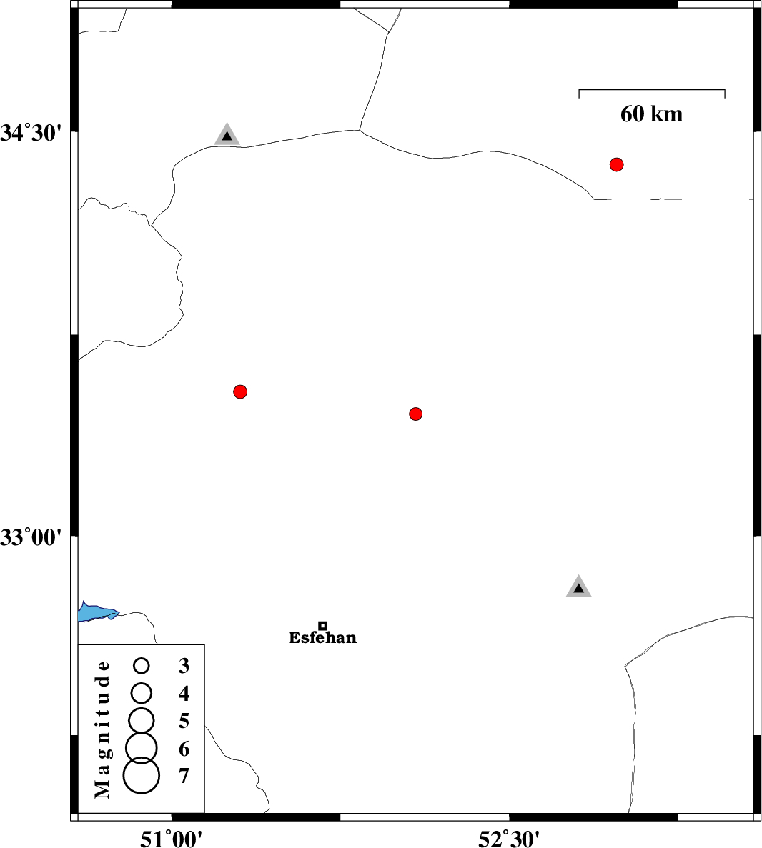 | 2016/08/25 | 18:50:32.1 | 23:20:32.1 | 33.454 | 52.084 | 14 | ML:2.5 | Esfahan Province, 18 km -East of Natanz | ||