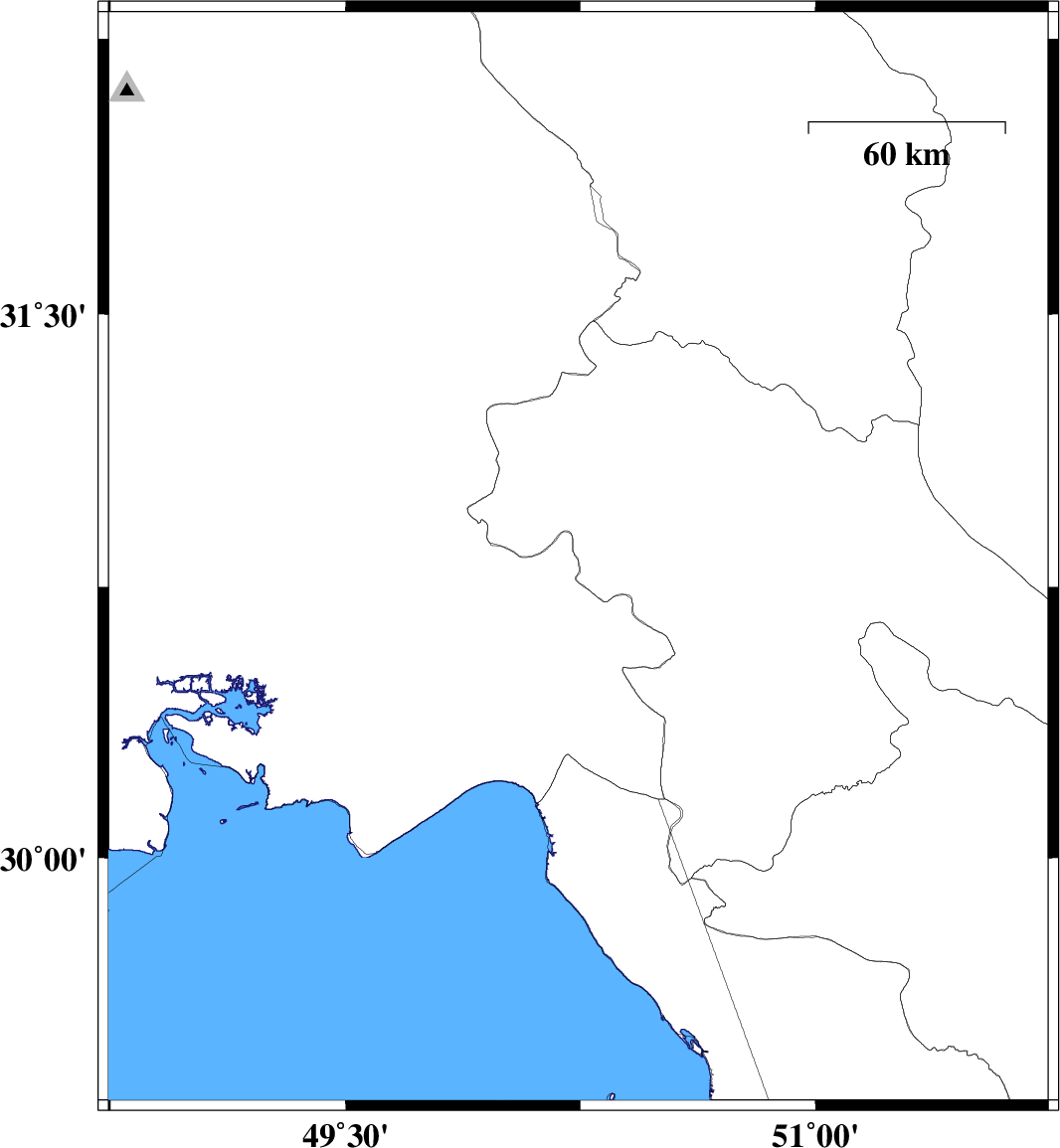 Map Region : lat:29.325-32.325  lon:48.743-51.743