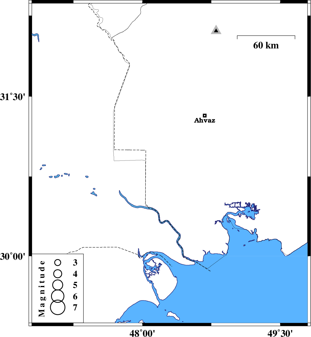 | 2016/09/13 | 08:51:46.6 | 13:21:46.6 | 30.865 | 48.297 | 15 | ML:3 | Khoozestan Province, 56 km North of Abadan |