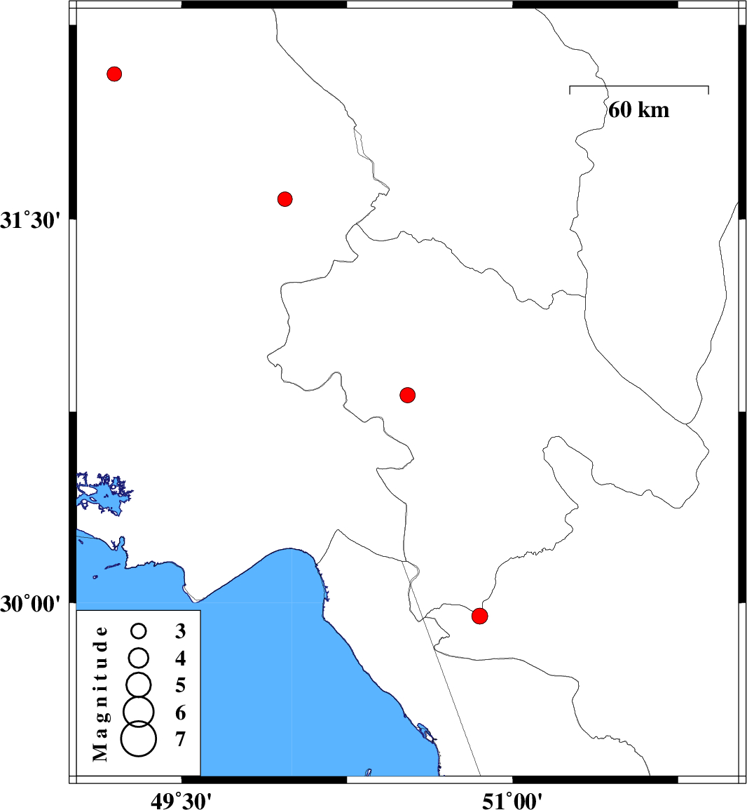 | 2016/09/12 | 10:47:04.7 | 15:17:04.7 | 29.948 | 50.851 | 16 | ML:3.2 | Fars Province, 45 km South of Dogonbadan |
