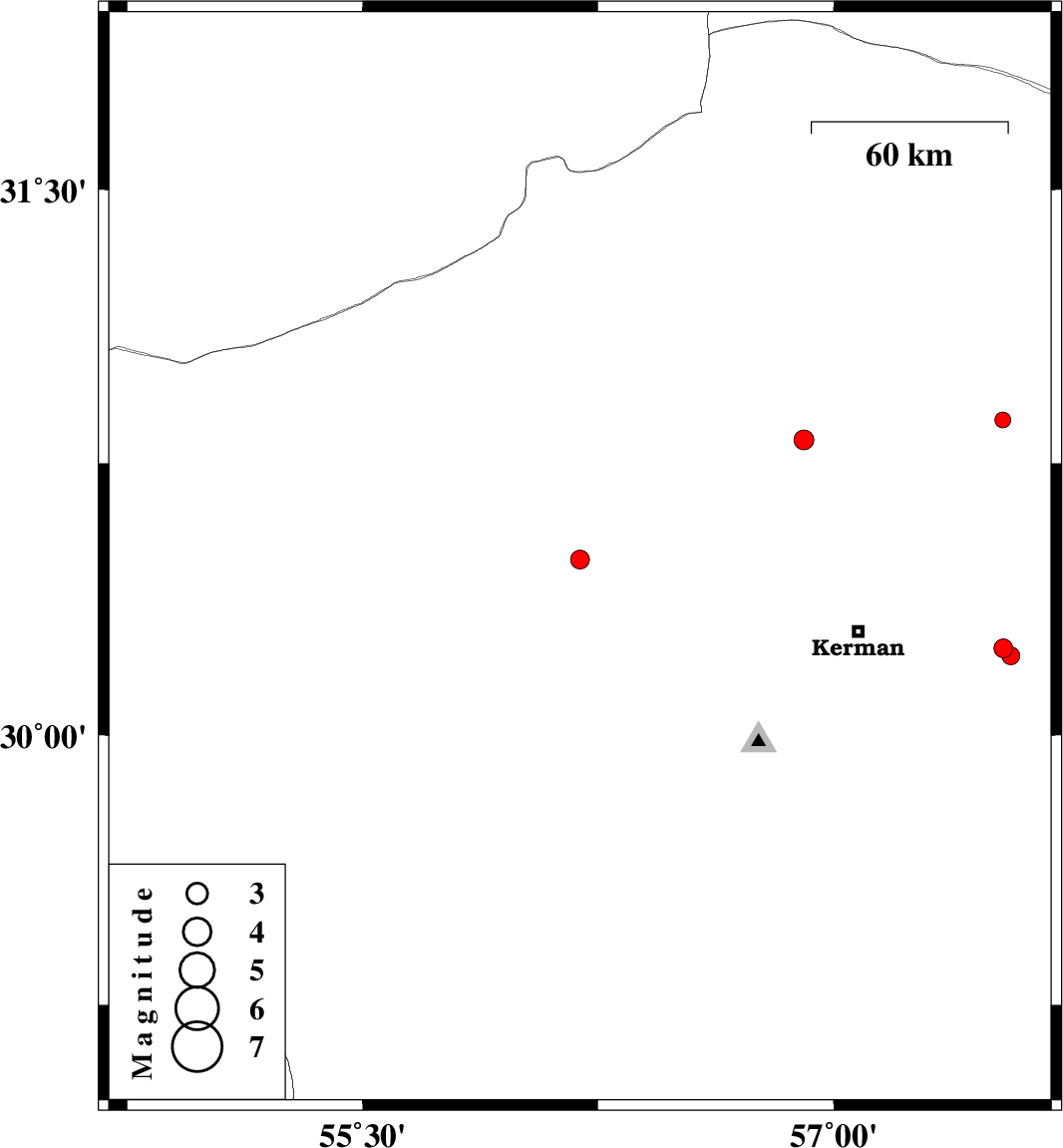 | 2016/09/22 | 10:50:19.3 | 14:20:19.3 | 30.485 | 56.192 | 15 | ML:2.7 | Kerman Province, 21 km -East of Rafsanjan | ||