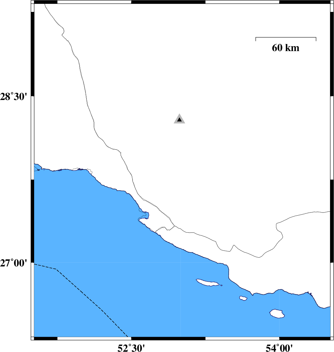 | 2016/10/04 | 16:05:47.4 | 19:35:47.4 | 28.255 | 53.049 | 18 | ML:3.2 | Fars Province, 23 km South of Qir va Karzin | ||