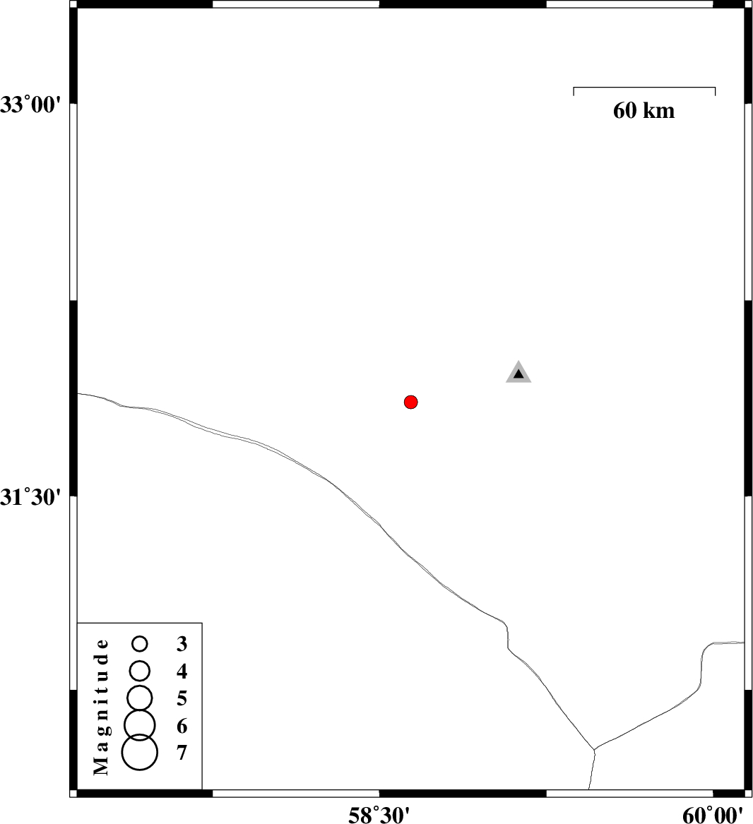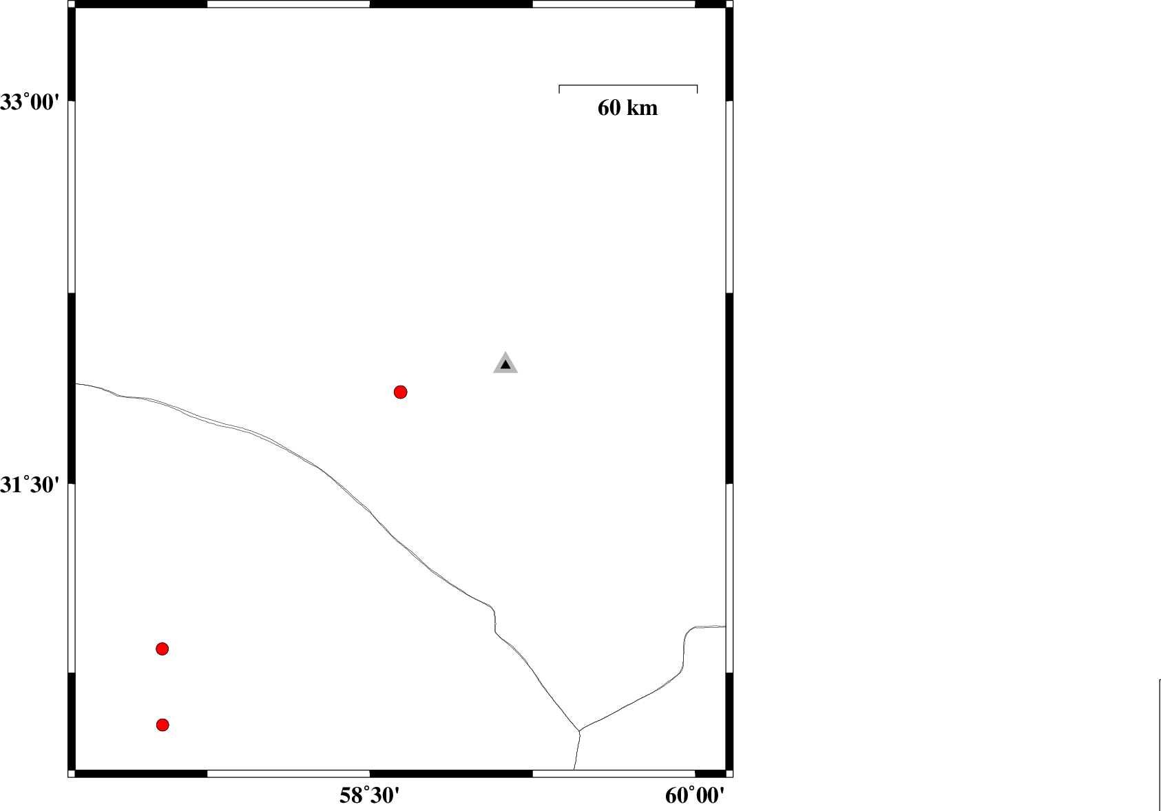 | 2016/10/14 | 05:31:34.7 | 09:01:34.7 | 31.861 | 58.641 | 14 | ML:2.7 | Khorasan(south) Province, 128 km South-West of Birjand | ||