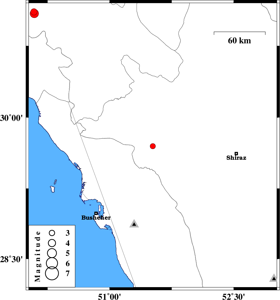 | 2016/10/21 | 05:19:06.1 | 08:49:06.1 | 29.697 | 51.522 | 15 | ML:3 | Fars Province, 15 km -West of Kazerun | ||