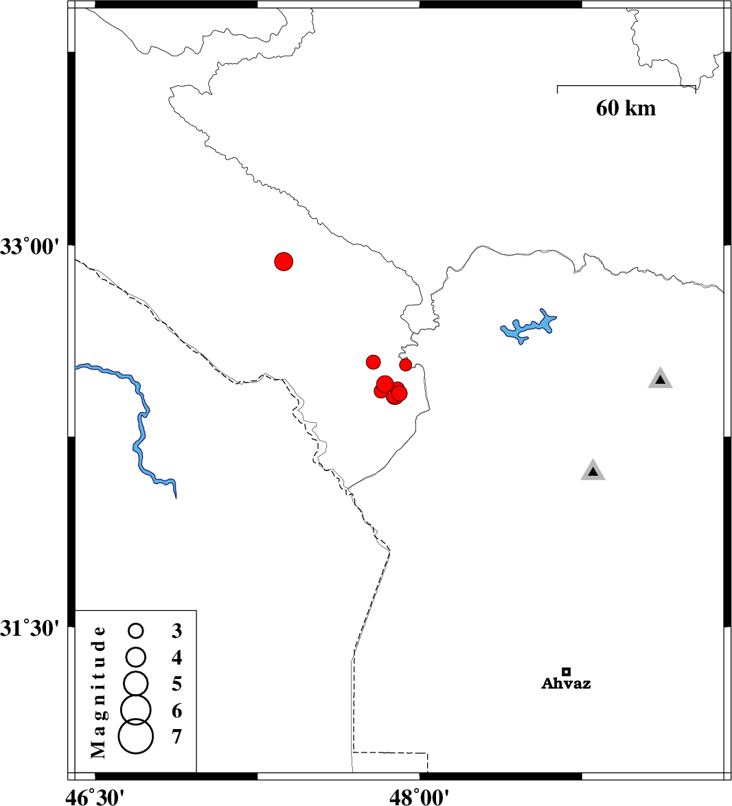 | 2016/10/31 | 12:26:20.0 | 15:56:20.0 | 32.411 | 47.886 | 18 | ML:3.7 | Ilam Province, 44 km -West of Andimeshk |