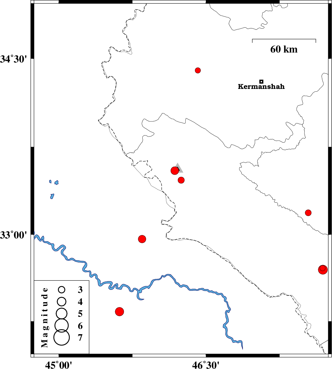 | 2016/11/23 | 16:33:59.4 | 20:03:59.4 | 34.4 | 46.417 | 6 | ML:2.5 | Kermanshah Province, 35 km North-West of Eslam Abad-E-Gharb | ||