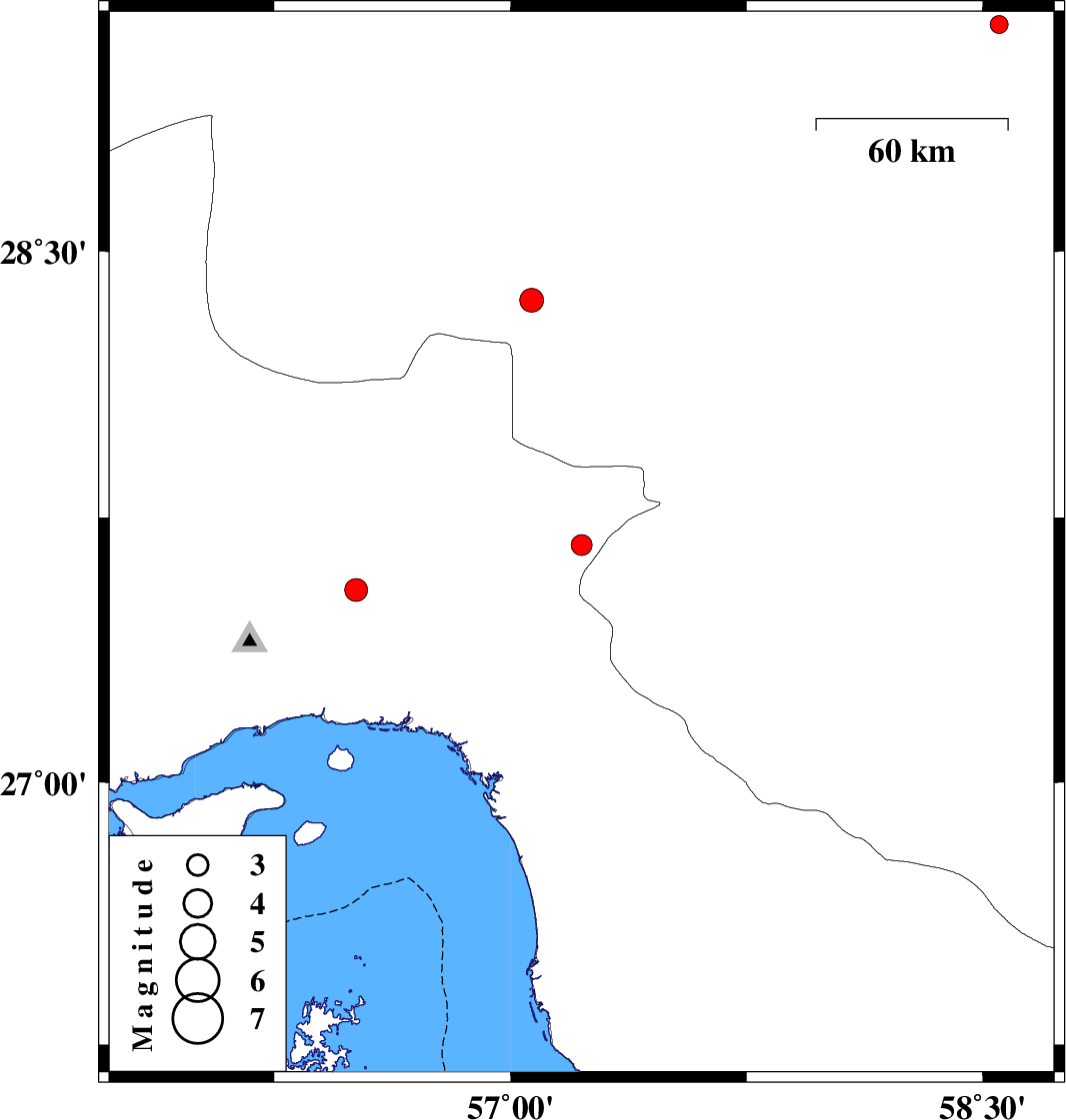 | 2016/12/12 | 04:56:52.4 | 08:26:52.4 | 27.546 | 56.51 | 15 | ML:3.3 | Hormozgan Province, 46 km North-East of Bandar-e abbas | ||