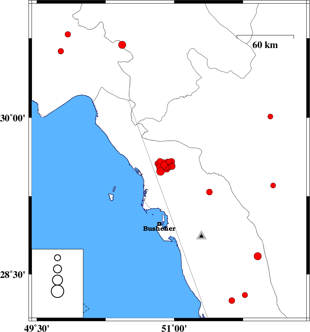 2016/12/18 17:15:00.8 20:45:00.8 29.52150.9119 ML:4 Bushehr Province, 39 km -East of Bandar-e genaveh