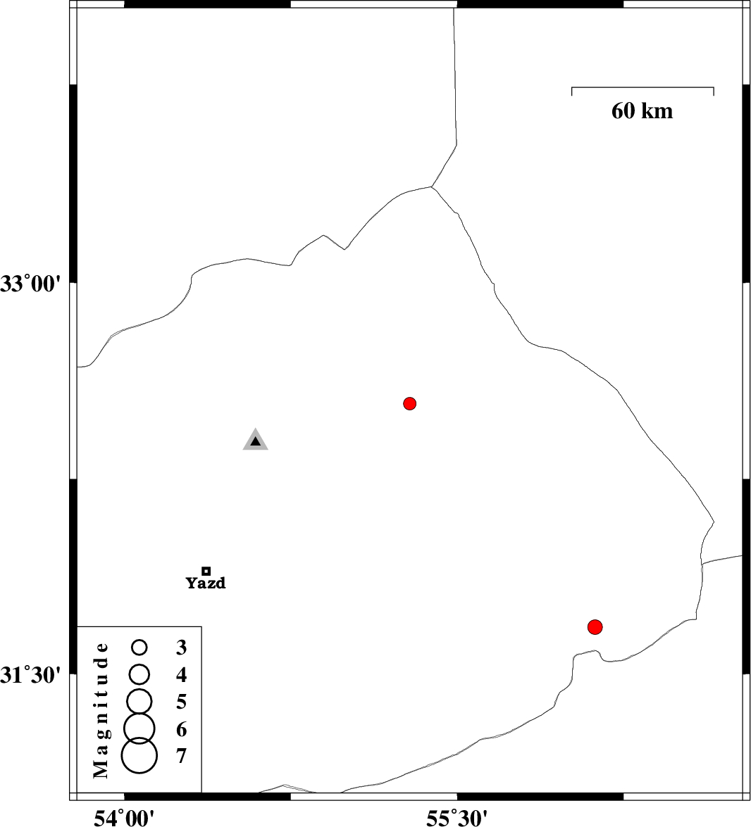 | 2016/12/12 | 01:45:44.2 | 05:15:44.2 | 31.681 | 56.121 | 14 | ML:2.9 | Yazd Province, 69 km -East of Bafq |