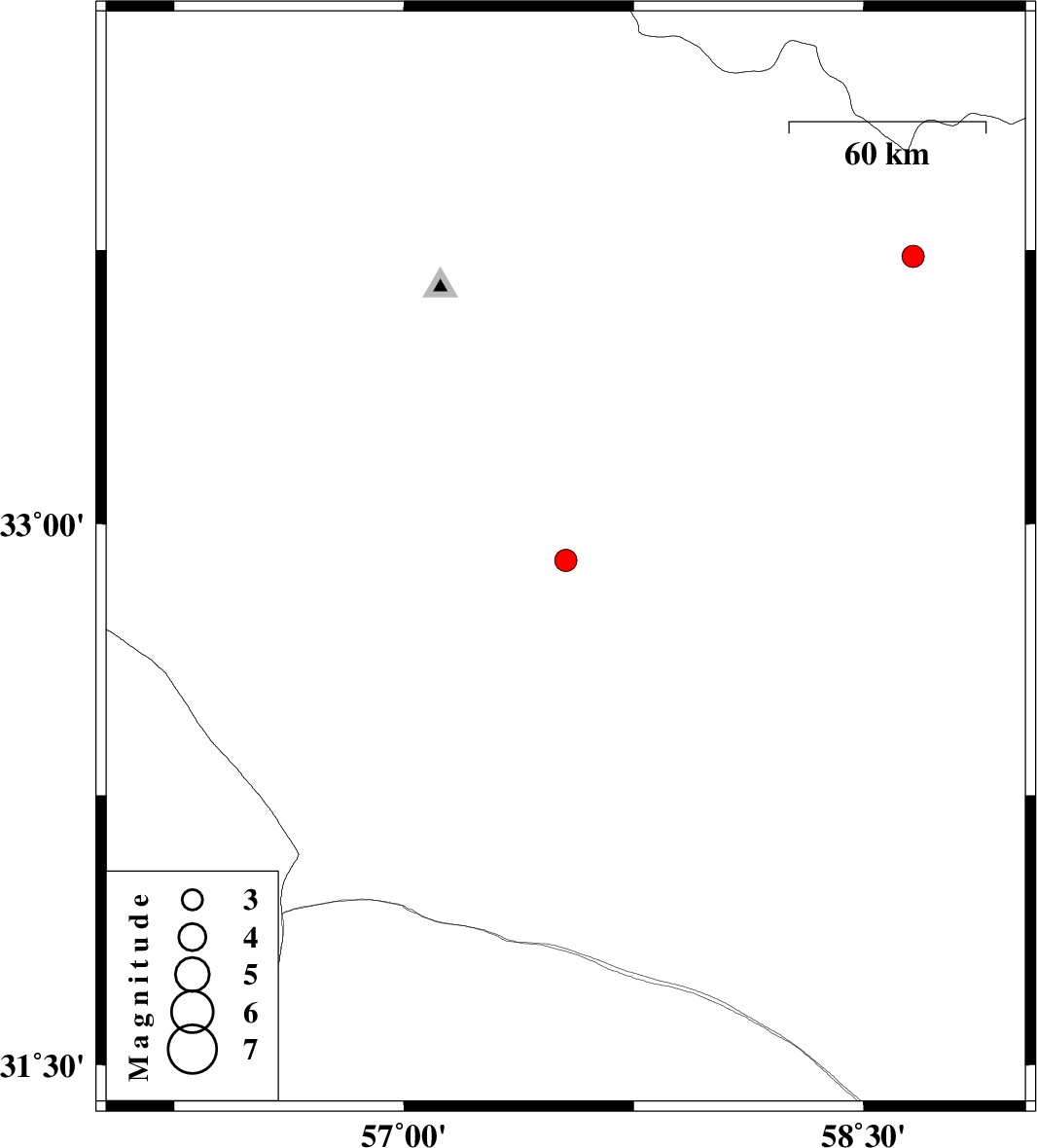 | 2016/12/22 | 04:25:51.4 | 07:55:51.4 | 32.899 | 57.528 | 8 | ML:3.3 | Yazd Province, 96 km South-East of Tabas | ||