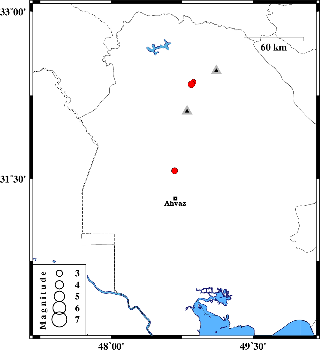 | 2016/12/25 | 13:22:51.7 | 16:52:51.7 | 31.571 | 48.67 | 14 | ML:2.9 | Khoozestan Province, 28 km North of Ahvaz | ||