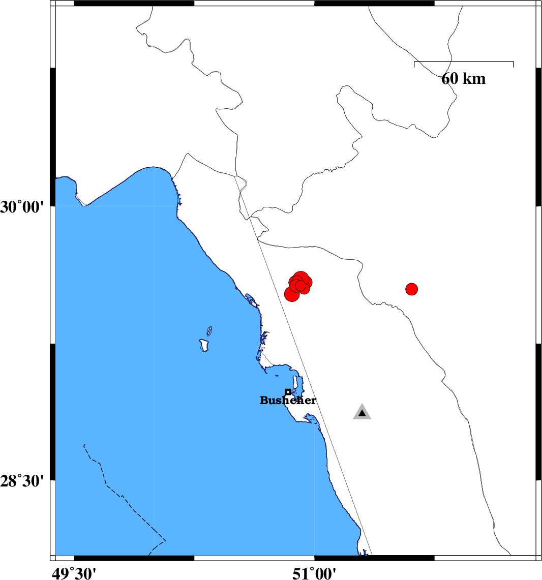 2017/01/02 01:11:45.6 04:41:45.6 29.59450.89116 ML:3 Bushehr Province, 37 km -East of Bandar-e genaveh