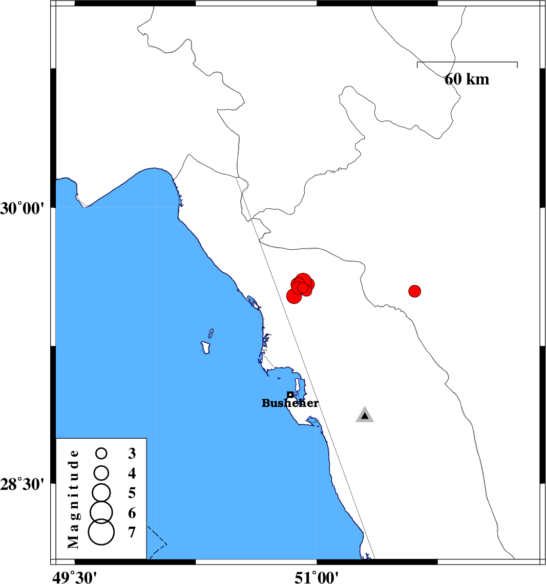 2017/01/02 00:42:07.4 04:12:07.4 29.650.91515 ML:4.6 Bushehr Province, 39 km -East of Bandar-e genaveh