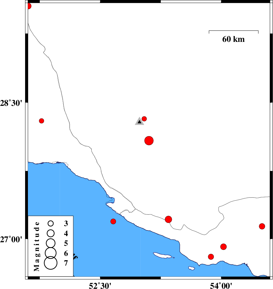 | 2017/01/03 | 18:34:31.0 | 22:04:31.0 | 27.194 | 52.662 | 14 | ML:3 | Persian Gulf, 45 km South-West of Mehr | ||