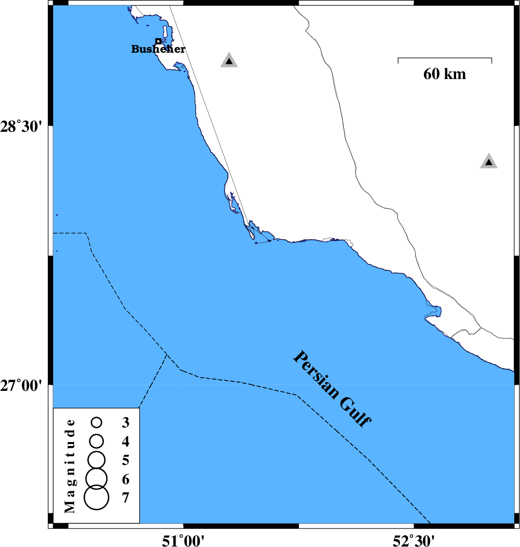 | 2017/01/14 | 11:33:20.0 | 15:03:20.0 | 27.69 | 51.652 | 14 | ML:2.6 | Persian Gulf, 43 km South-West of Bandar-e kangan |