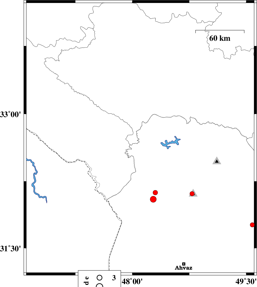 | 2017/01/22 | 07:19:17.6 | 10:49:17.6 | 32.723 | 48.104 | 14 | ML:2.7 | Khoozestan Province, 37 km North-West of Andimeshk | ||