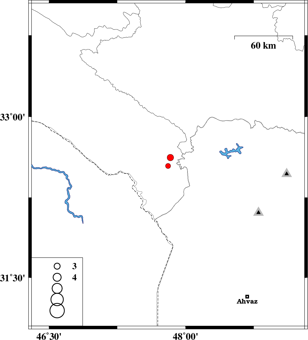 | 2017/02/01 | 08:53:04.9 | 12:23:04.9 | 32.544 | 47.808 | 14 | ML:2.6 | Ilam Province, 52 km -West of Andimeshk | ||