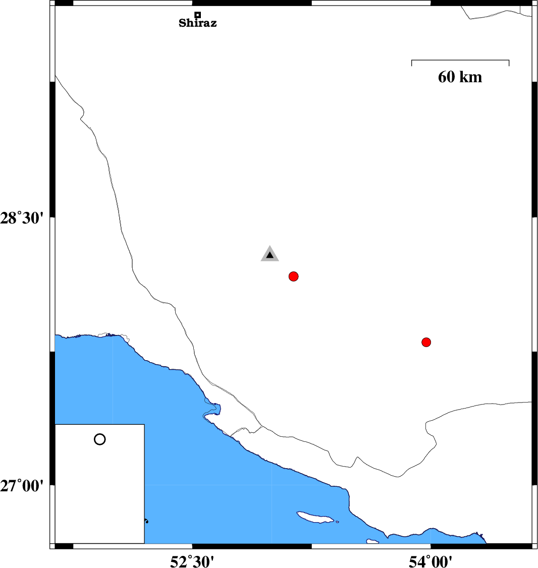 | 2017/02/02 | 21:58:08.3 | 01:28:08.3 | 28.17 | 53.136 | 6 | ML:2.7 | Fars Province, 34 km South-East of Qir va Karzin | ||