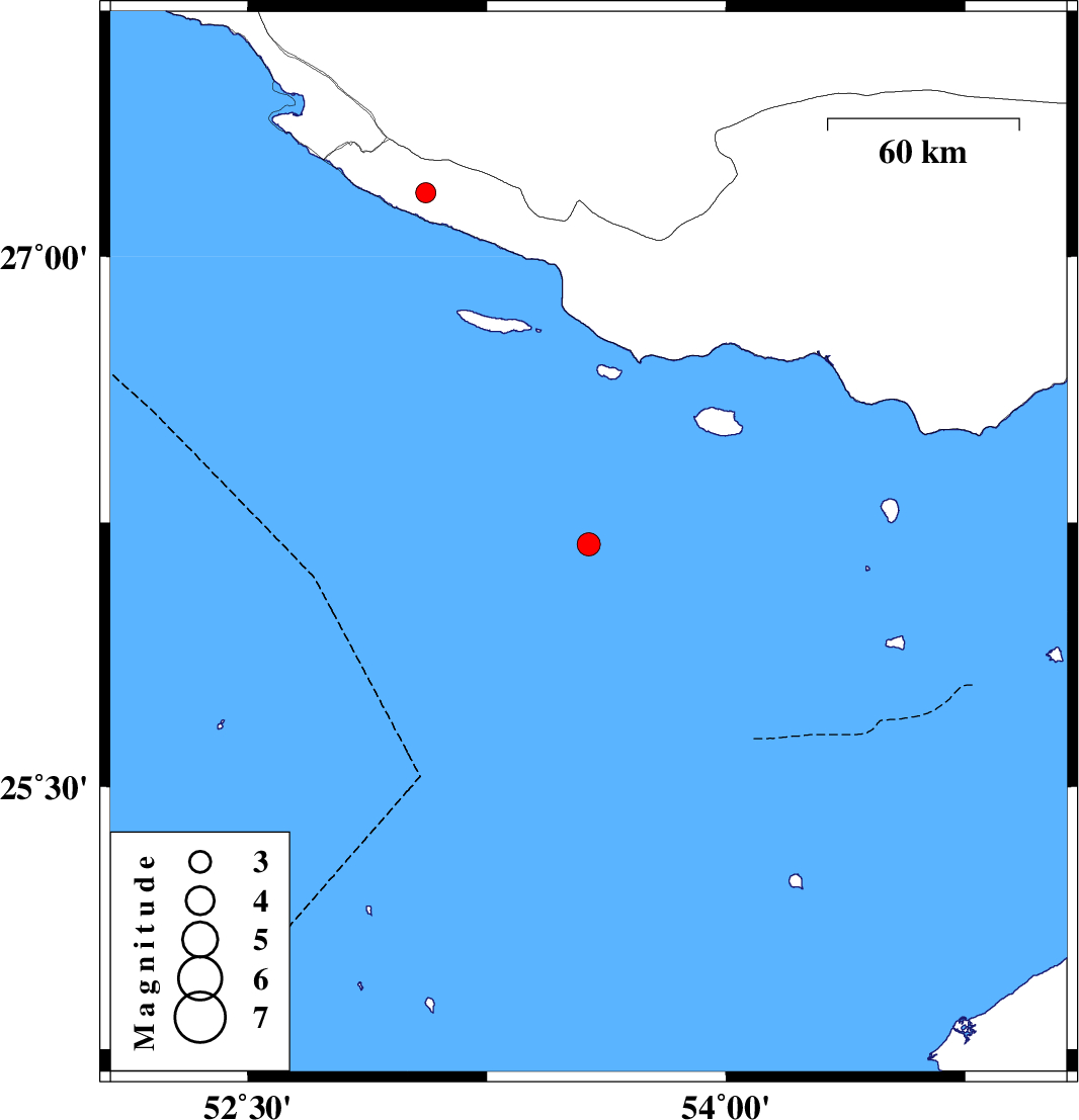 | 2017/02/17 | 23:51:22.3 | 03:21:22.3 | 26.188 | 53.569 | 14 | ML:3.2 | Persian Gulf | ||