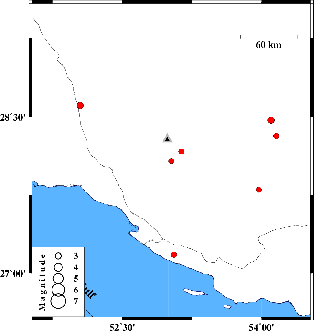 | 2017/02/09 | 02:06:11.6 | 05:36:11.6 | 27.179 | 53.058 | 14 | ML:2.8 | Hormozgan Province, 20 km South-West of Lamerd | ||