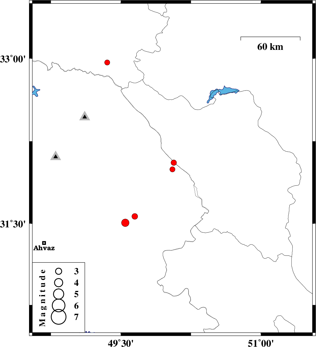 | 2017/03/02 | 07:48:14.8 | 11:18:14.8 | 31.995 | 50.052 | 15 | ML:2.6 | Khoozestan Province, 25 km North-East of Izeh | ||