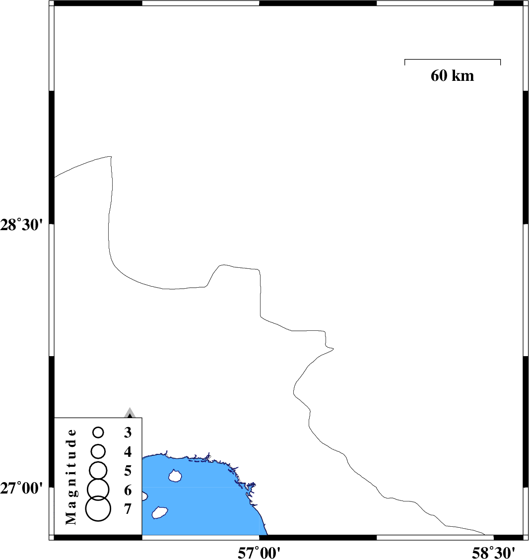 | 2017/03/08 | 05:00:11.1 | 08:30:11.1 | 28.227 | 57.187 | 16 | ML:3.1 | Kerman Province, 59 km North-West of Kahnuj |