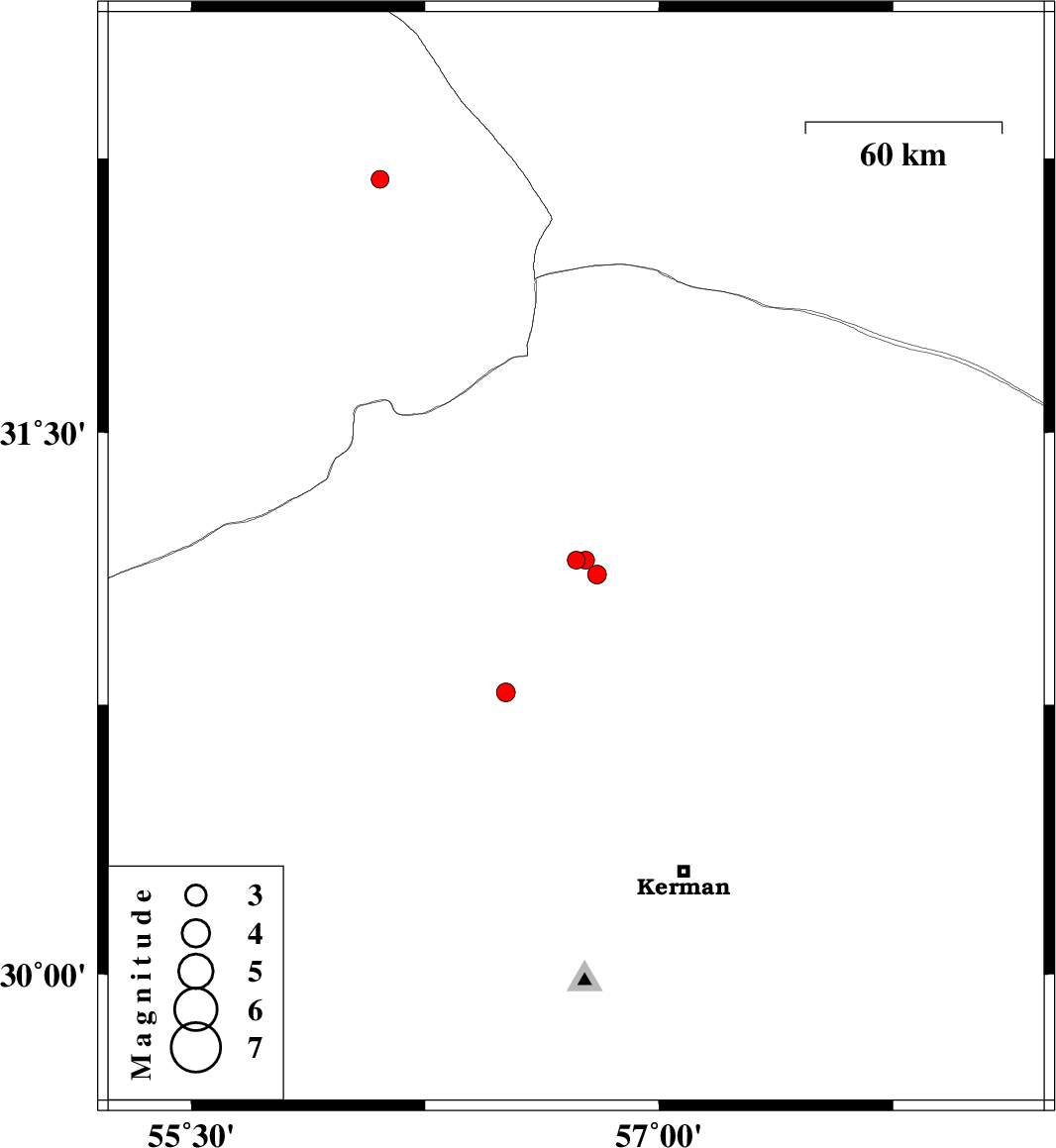 | 2017/03/04 | 19:36:56.2 | 23:06:56.2 | 31.149 | 56.765 | 14 | ML:2.5 | Kerman Province, 14 km South of Ravar | ||