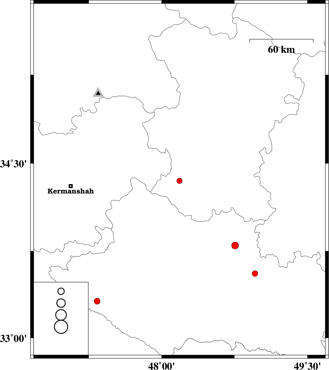 | 2017/02/17 | 08:09:50.3 | 11:39:50.3 | 33.797 | 48.755 | 15 | ML:3.3 | Lorestan Province, 11 km of Borujerd | ||