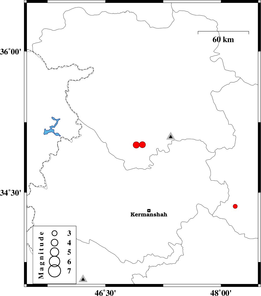 | 2017/03/11 | 10:33:41.2 | 14:03:41.2 | 35.008 | 46.901 | 6 | ML:3.8 | Kurdistan Province, 21 km North of Kamyaran | ||