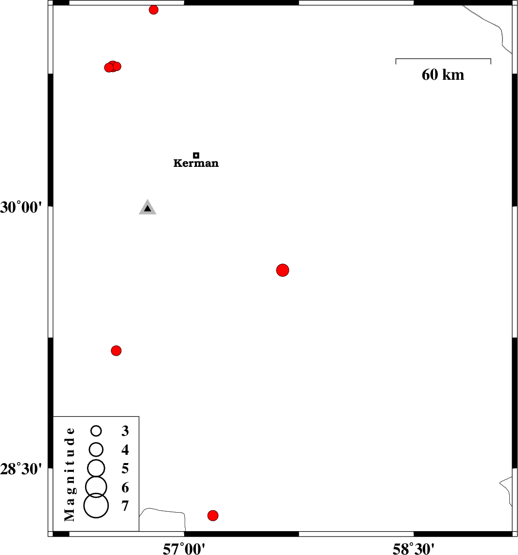 | 2017/03/16 | 12:29:22.6 | 15:59:22.6 | 29.635 | 57.643 | 14 | ML:3.7 | Kerman Province, 108 km North of Jiroft | ||