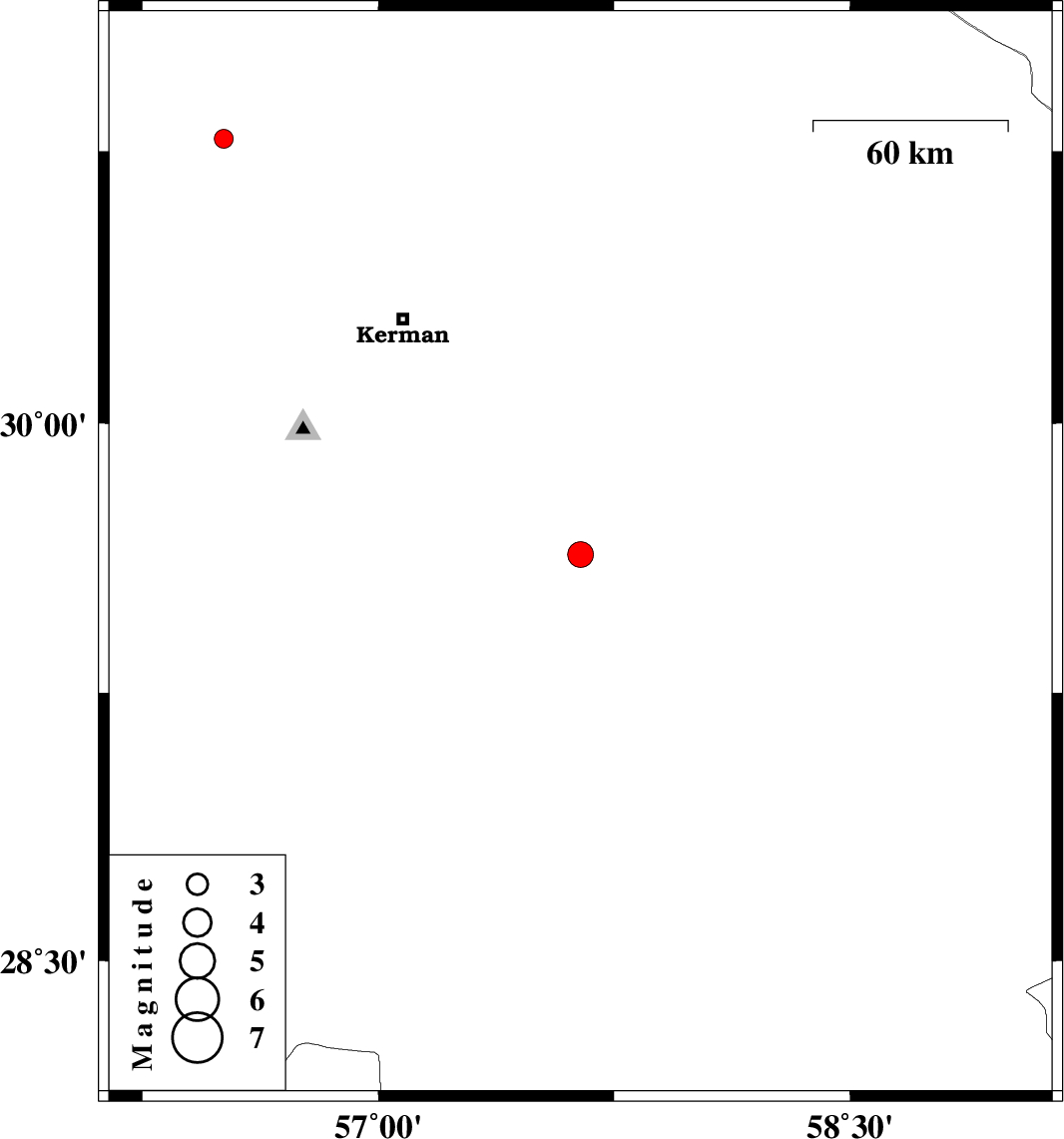 | 2017/03/16 | 12:29:22.6 | 15:59:22.6 | 29.635 | 57.643 | 14 | ML:3.7 | Kerman Province, 108 km North of Jiroft | ||
