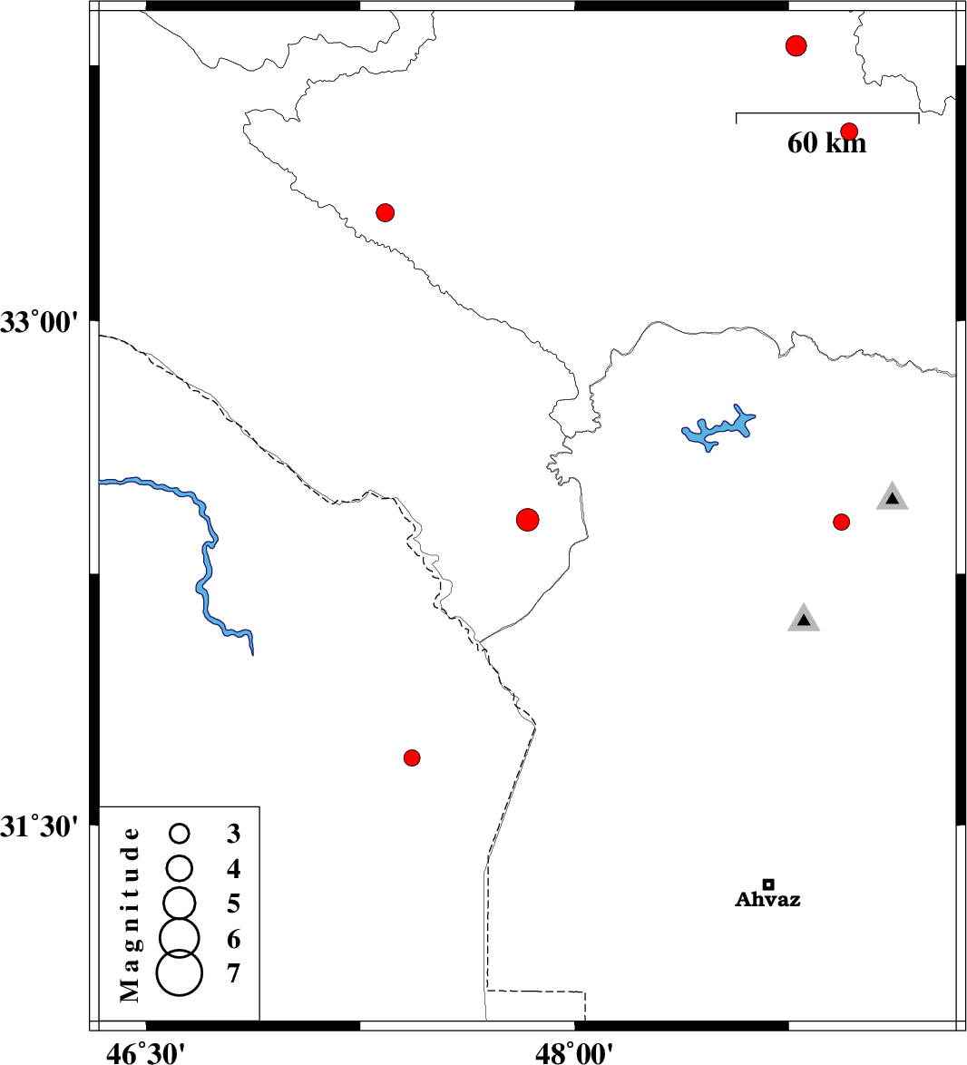 | 2017/03/16 | 12:28:13.8 | 15:58:13.8 | 33.807 | 48.775 | 15 | ML:3.2 | Lorestan Province, 10 km of Borujerd | ||